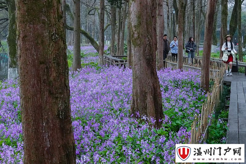 尽管阴雨天气带来丝丝微凉,但茅家埠景区却呈现出另一番迷人的景象。景区内,二月兰已连片盛开,蓝紫色的花海沿着湖岸肆意铺展,与水杉刚刚萌发的新绿、亭台在水中的倒影以及摇橹小船相互映衬,构成了一幅如诗如画的春日美景。不少市民和游客被这雨中的美景所吸引,驻足赏花,在淅淅沥沥的春雨中,邂逅西湖那温婉动人的春色,感受着雨西湖独有的浪漫与宁静。
