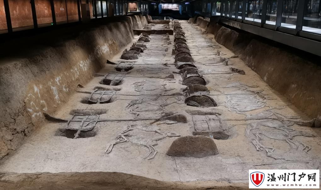 荆州熊家冢国家考古遗址公园一号车马坑出土的车马阵,气势恢宏。新华社记者 余国庆 摄
