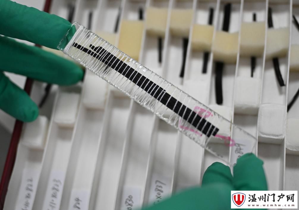 荆州文物保护中心简牍工作室工作人员处理竹简残片。新华社记者 程敏 摄