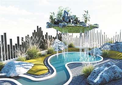 “一个花园不应只是展示美,还应代表未来园林的方向,更具智能化。”林建介绍,其公司在AI设计作品《一方庭》基础上,花了很多巧思进行施工图深化调整。其设计的“曲水葳蕤”,一大亮点就是在花园空间里布置了一个可互动的悬空的浮岛,园中“曲水流觞”的桌子,可智能控流,游客在固定点位,拍拍桌子,就会有杯子随曲水精准送到跟前。园中还设计了一块特制的玻璃,届时将通过投影仪,播放墨池、王羲之等相关的AI故事片。